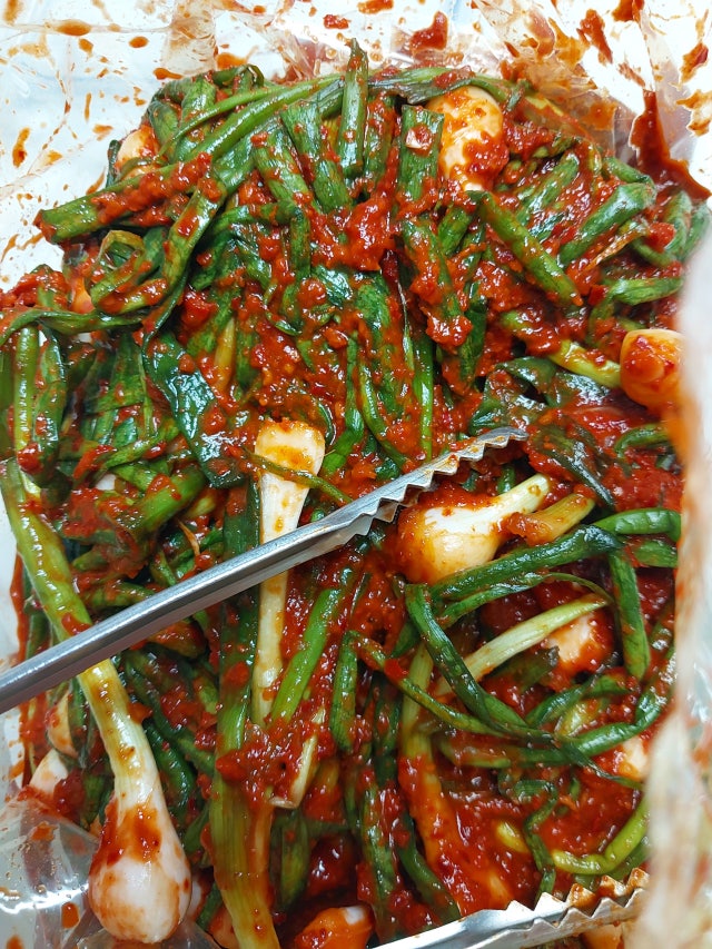 아삭하지 않아요 줄기도 있으면 좋으련만.. 약간 양념과...