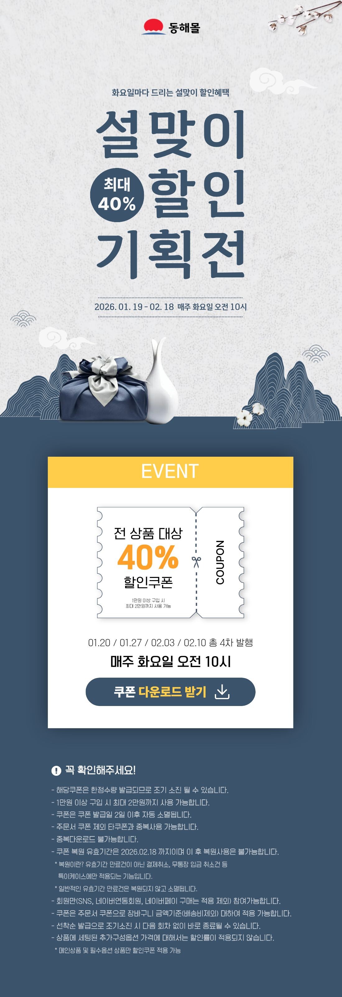 2025 동해몰 봄맞이 기획전 20% 할인쿠폰 이벤트!