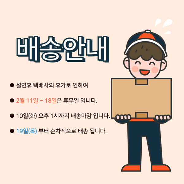 (평일) 오후1시까지 주문된 건은 당일 출고! 익일 배송됩니다.